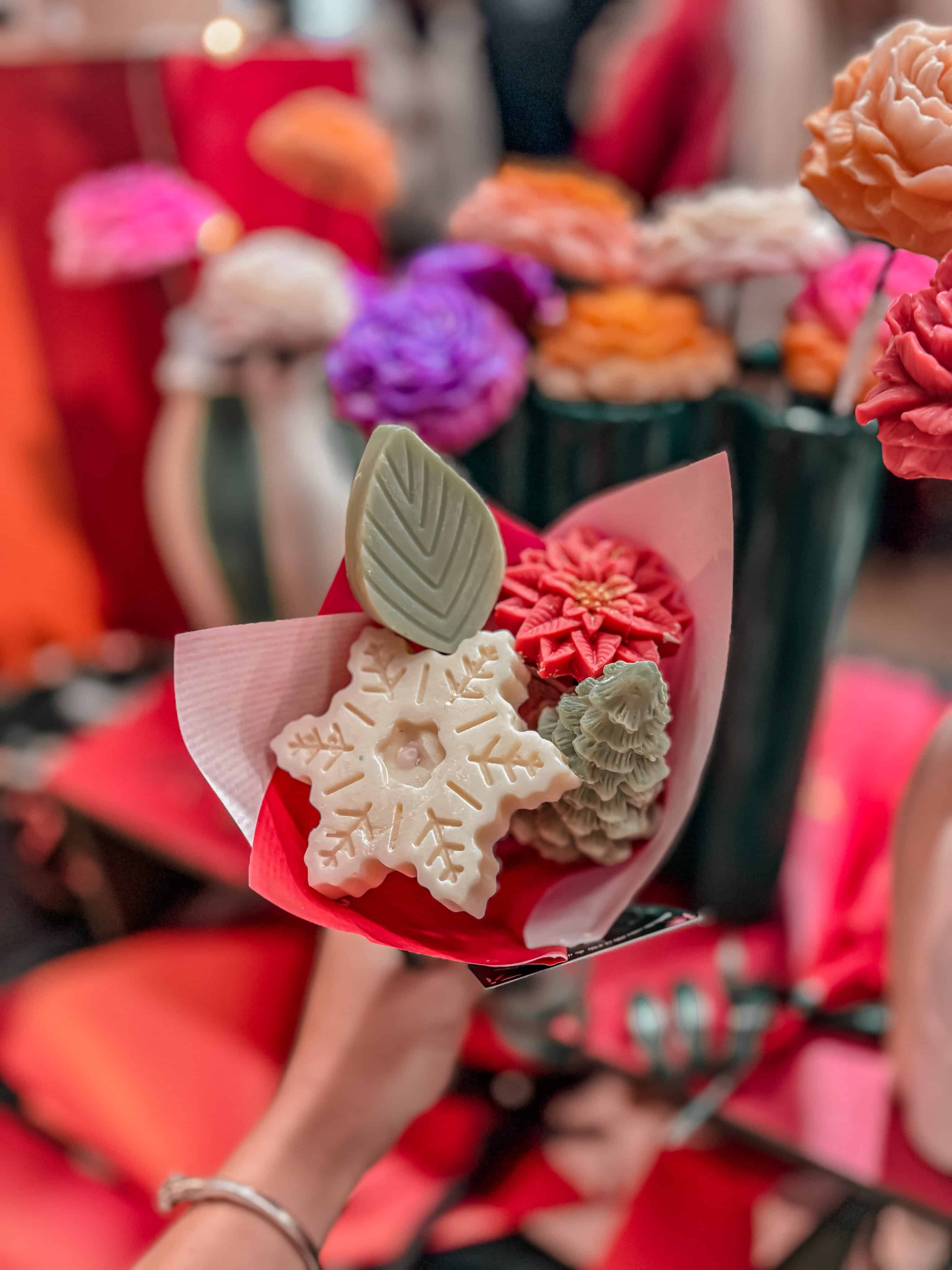 Bouquet de Noël en cire parfumée – décoration artisanale et senteurs festives