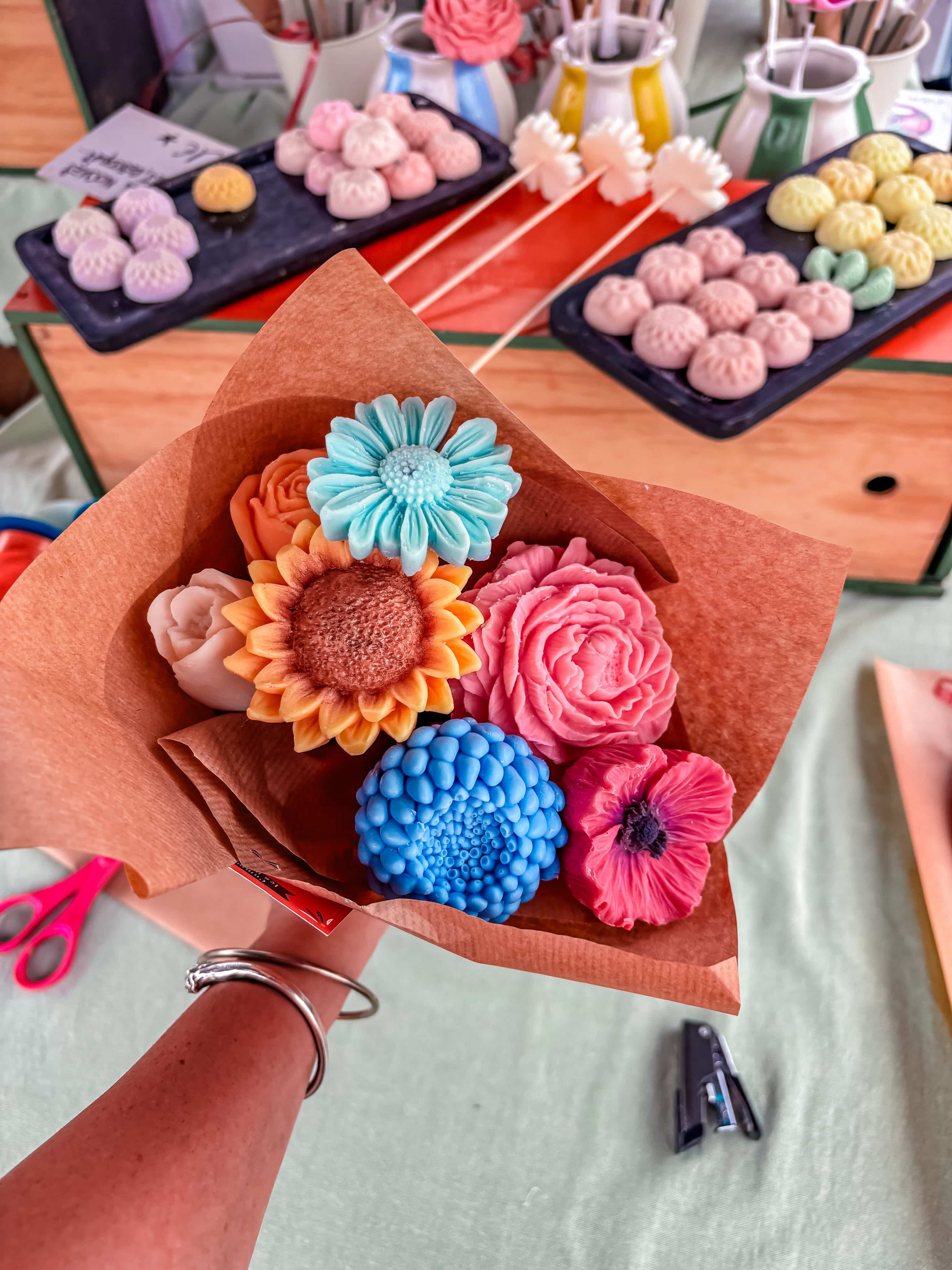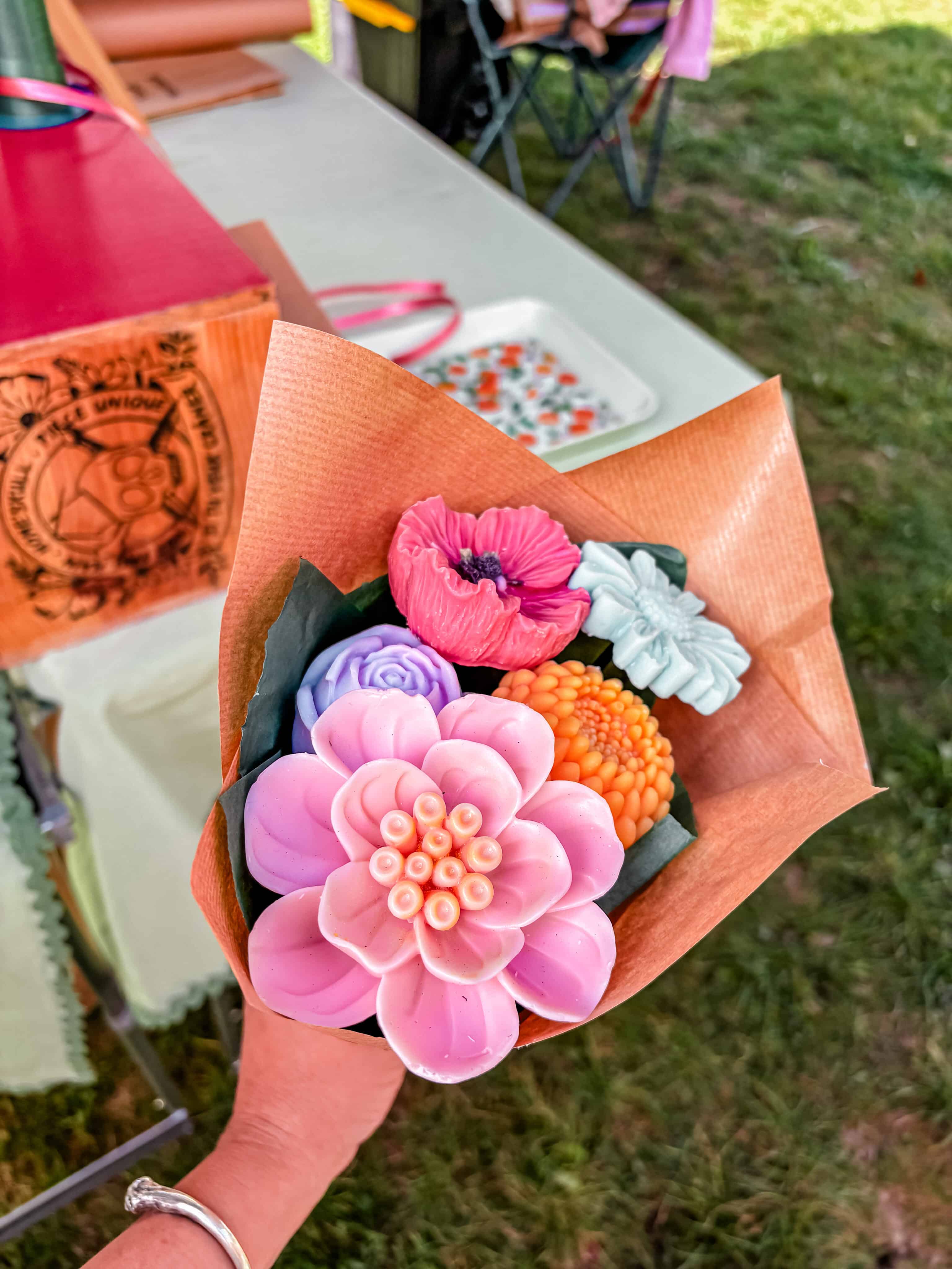 Une création lumineuse et vibrante, à composer selon vos envies. La composition florale Francesca la Lumineuse est une ode à la couleur, à la lumière et à la liberté de créer. Elle se compose de cinq fleurs parfumées artisanales, à choisir selon vos préférences de couleurs ou simplement votre humeur. Chaque fleur est réalisée à la main avec passion, dans une cire végétale parfumée soigneusement infusée de notre fragrance maison.